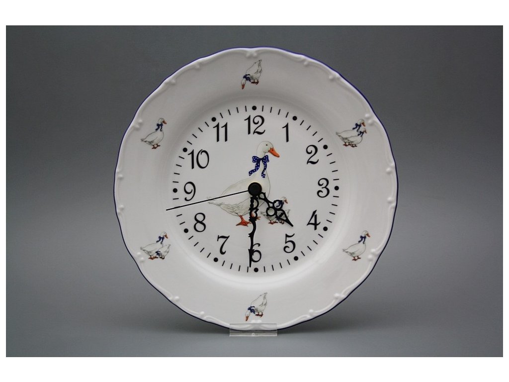 Practical plate clock 25cm of high-quality Czech porcelain. Quartz clockwork (2-year warranty), batteries included.