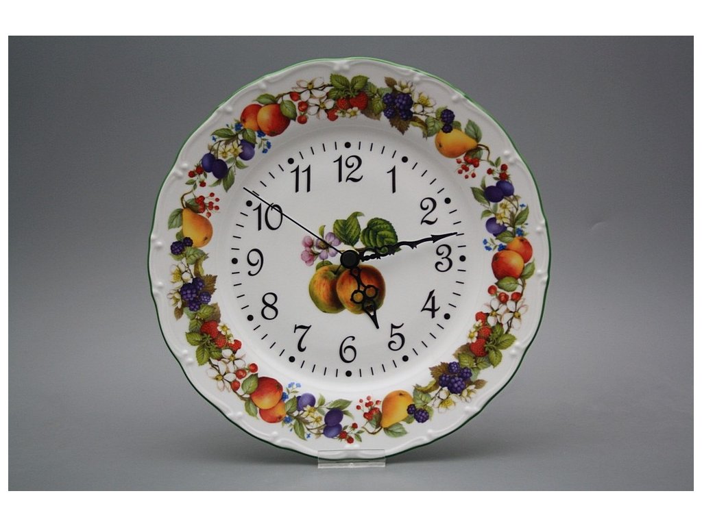 Practical plate clock 25cm of high-quality Czech porcelain. Quartz clockwork (2-year warranty), batteries included.