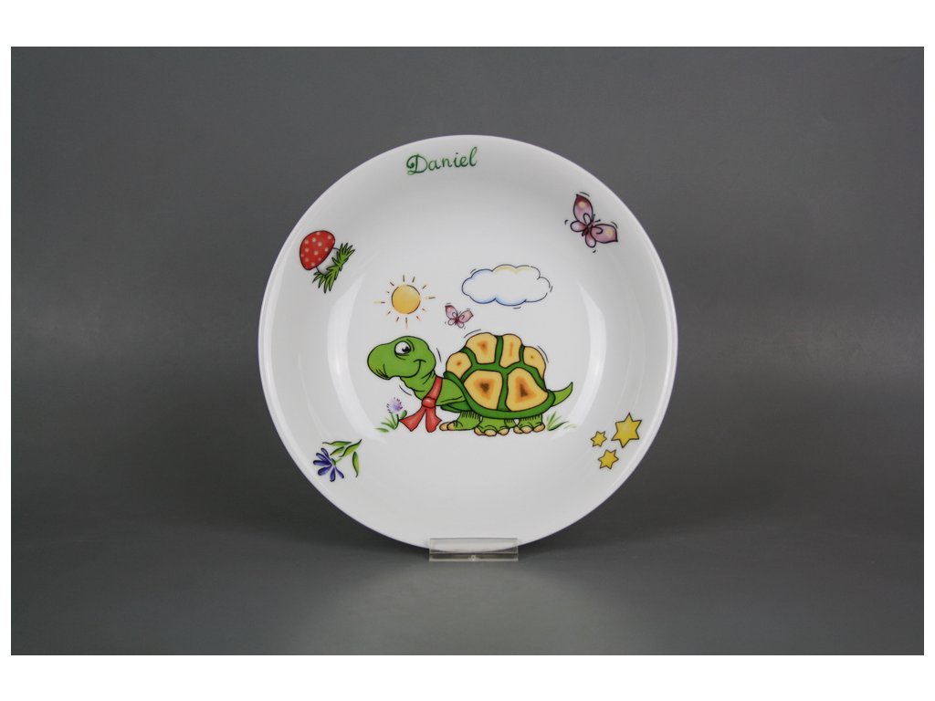 Practical plate coupsoup 20cm made of high-quality Czech porcelain, featuring a child's handwritten name.