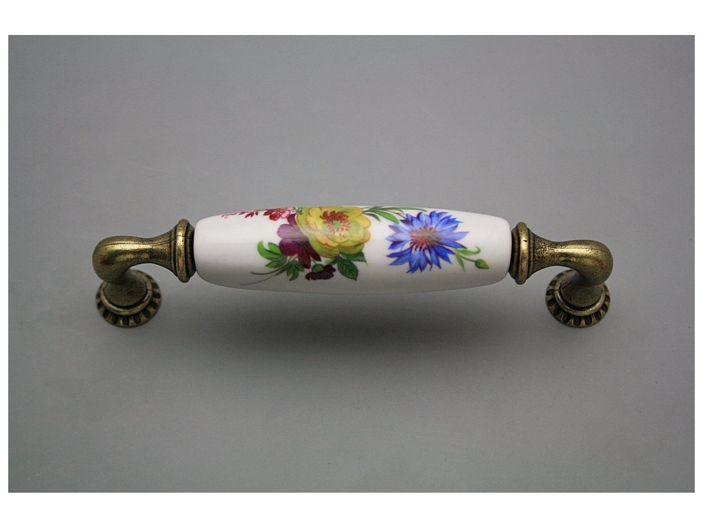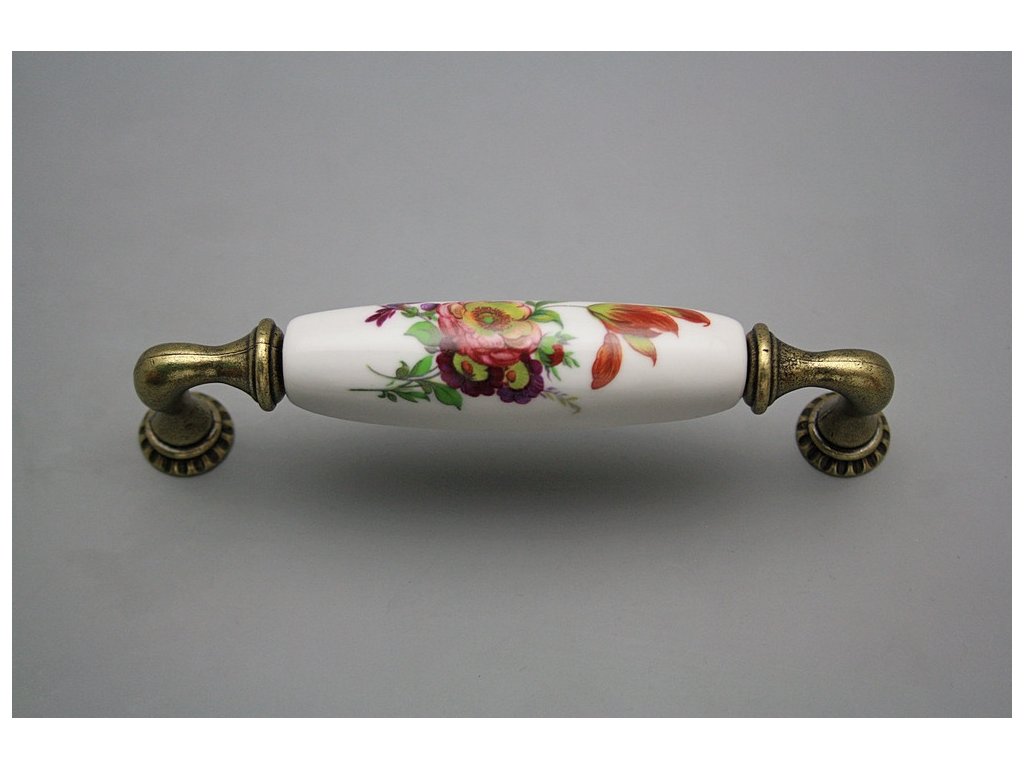 Luxury combined rustic brass handle - pitch of 128mm, design of old brass in combination with porcelain. Included with delivery is 2x Snap off screw (M4 thread, M4x20, 45mm length).