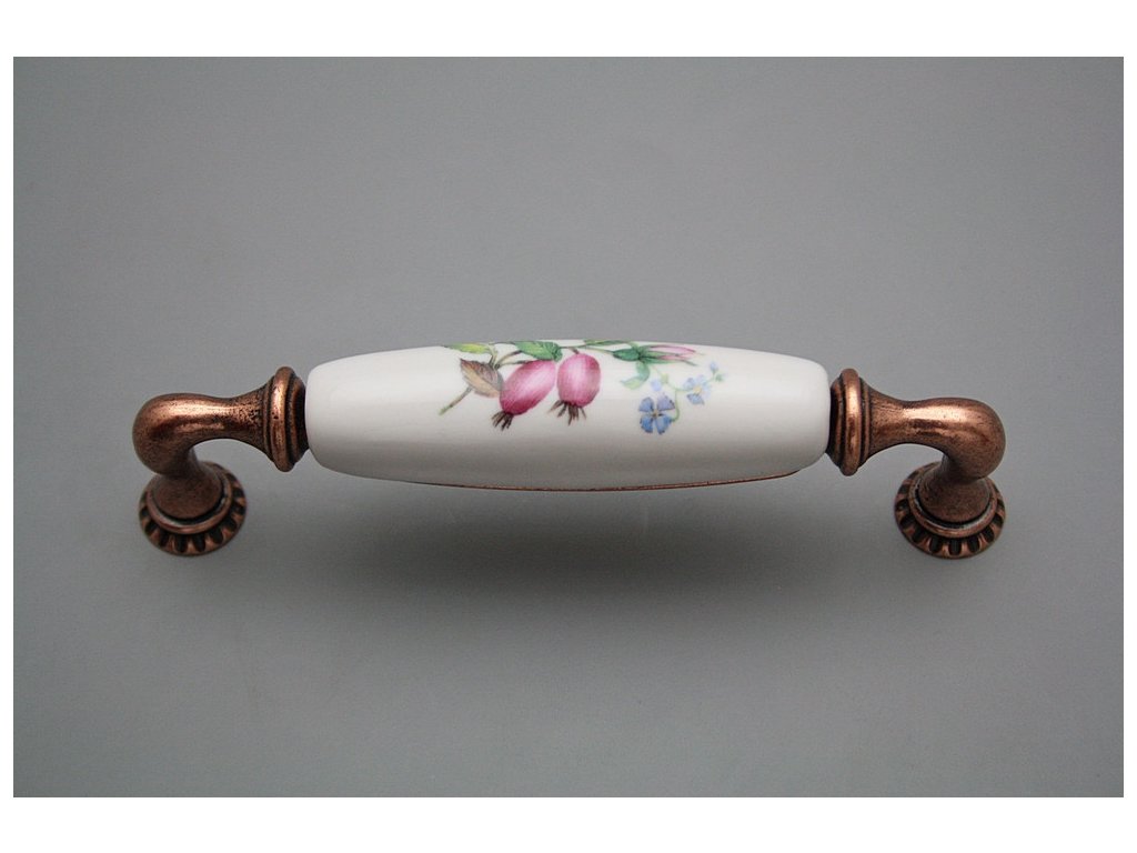 Luxury combined rustic brass handle - pitch of 128mm, design of old copper in combination with porcelain. Included with delivery is 2x Snap off screw (M4 thread, M4x20, 45mm length).
