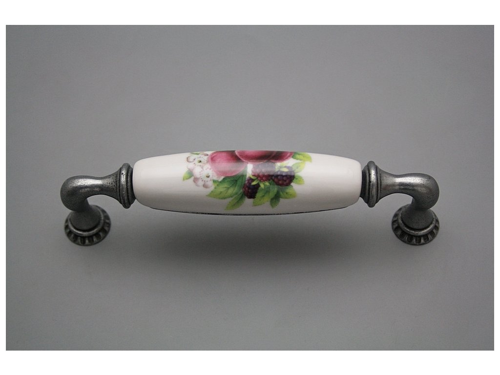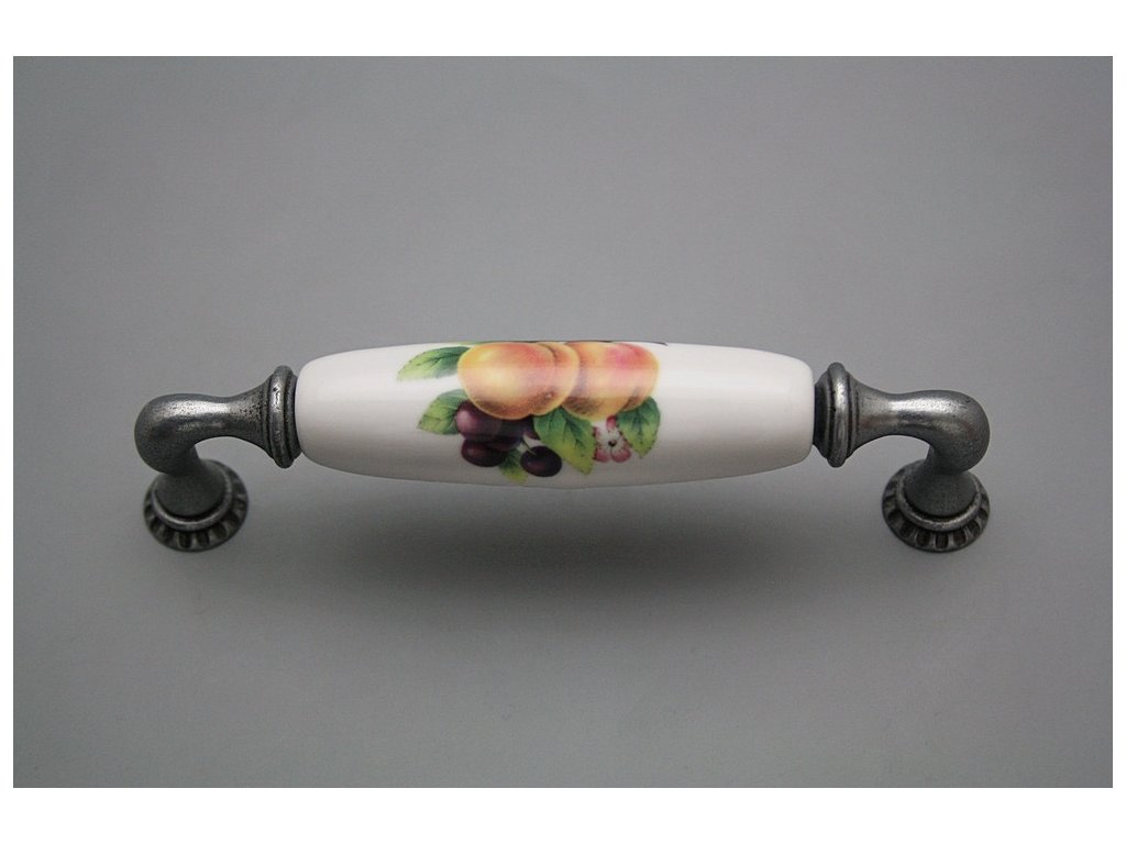 Luxury combined rustic brass handle - pitch of 128mm, design of Antique silver (FV) in combination with porcelain. Included with delivery is 2x Snap off screw (M4 thread, M4x20, 45mm length).
