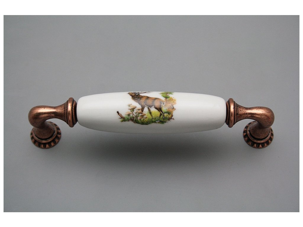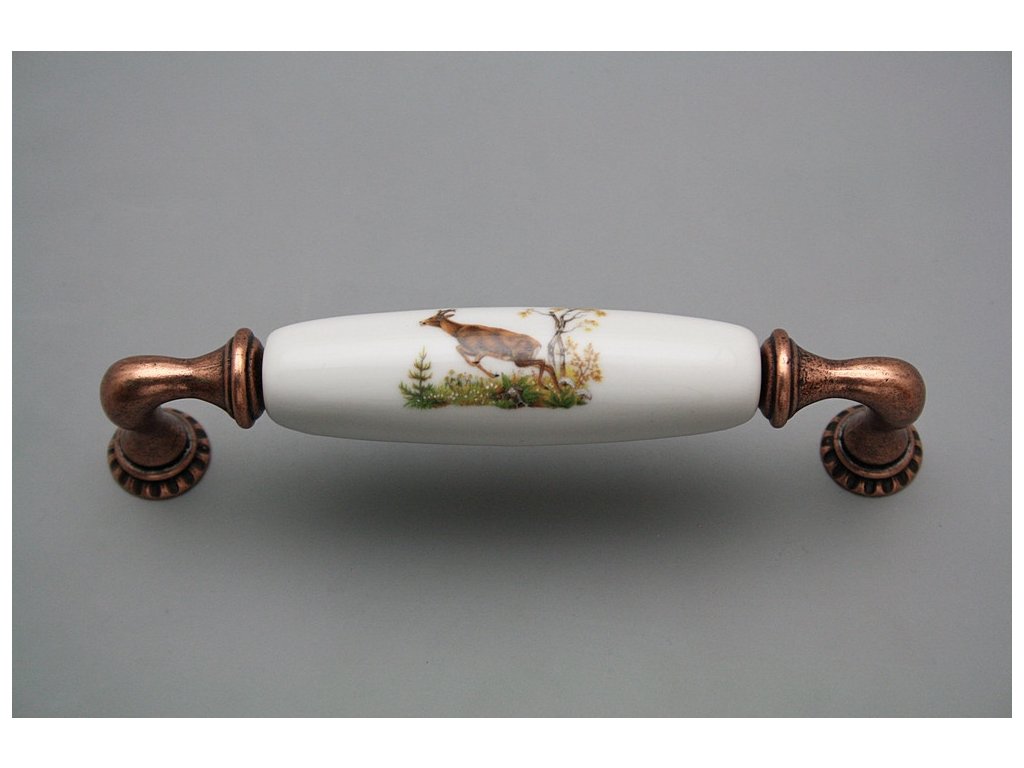 Luxury combined rustic brass handle - pitch of 128mm, design of old copper in combination with porcelain. Included with delivery is 2x Snap off screw (M4 thread, M4x20, 45mm length).