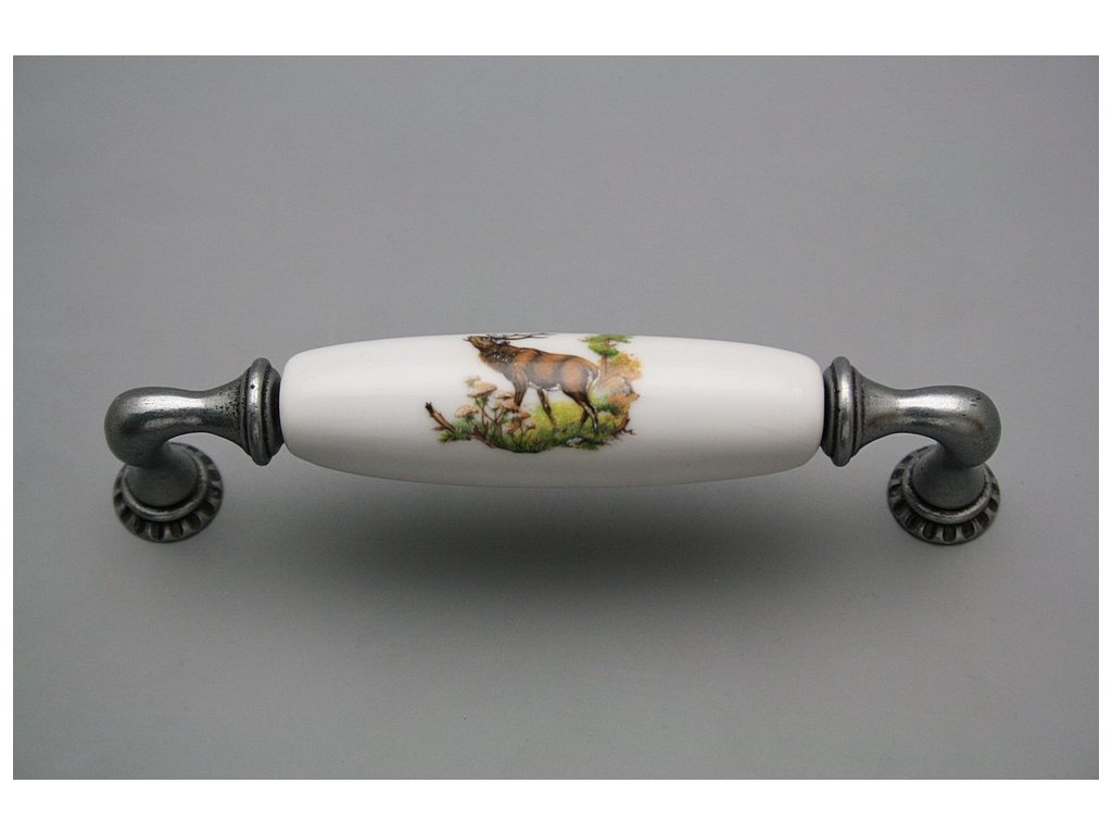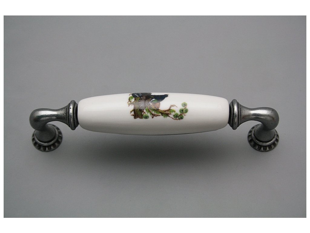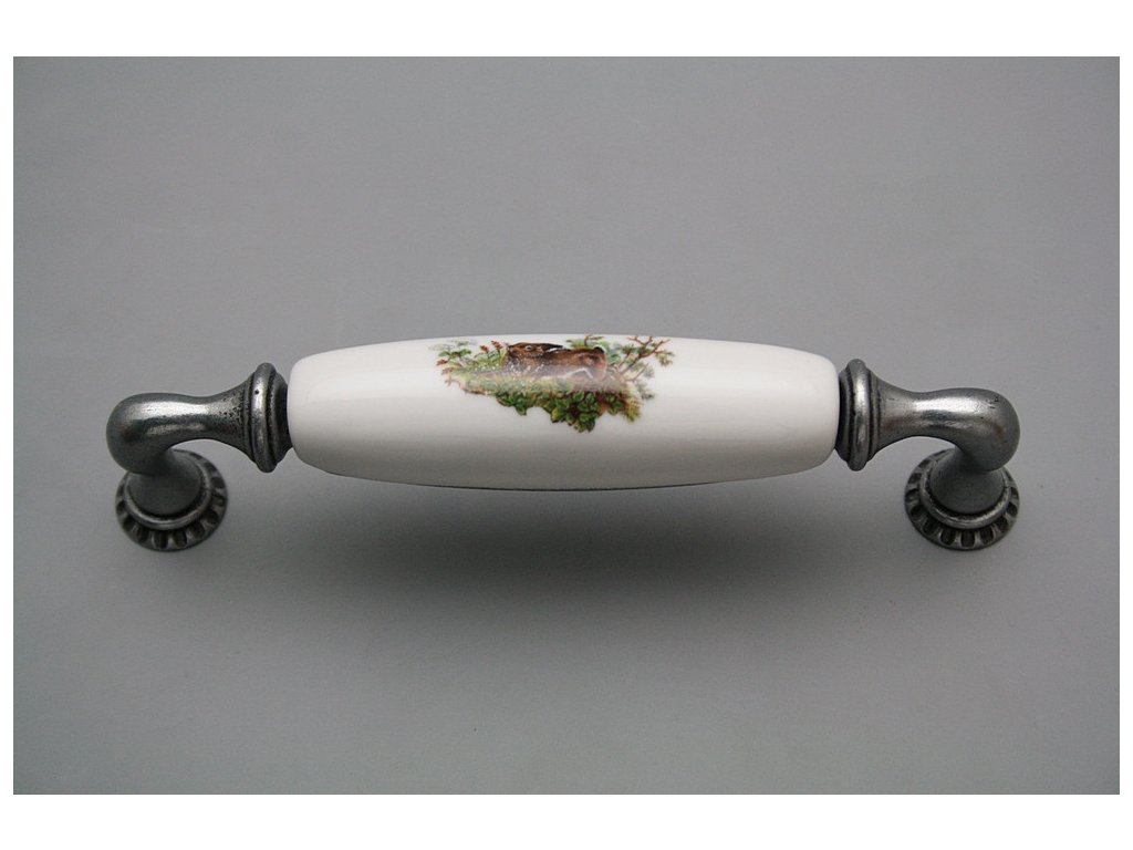 Luxury combined rustic brass handle - pitch of 128mm, design of Antique silver in combination with porcelain. Included with delivery is 2x Snap off screw (M4 thread, M4x20, 45mm length).