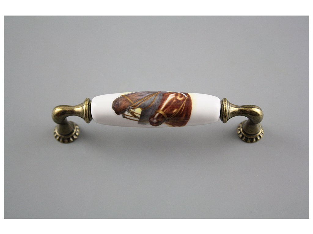 Luxury combined rustic brass handle - pitch of 128mm, design of old brass in combination with porcelain. Included with delivery is 2x Snap off screw (M4 thread, M4x20, 45mm length).