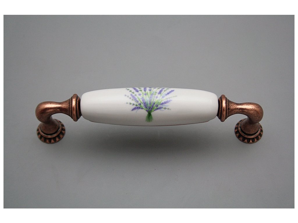 Luxury combined rustic brass handle - pitch of 128mm, design of old copper in combination with porcelain. Included with delivery is 2x Snap off screw (M4 thread, M4x20, 45mm length).