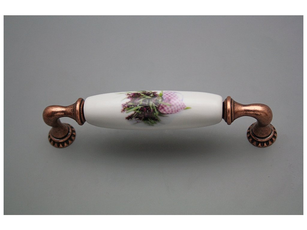 Luxury combined rustic brass handle - pitch of 128mm, design of old copper in combination with porcelain. Included with delivery is 2x Snap off screw (M4 thread, M4x20, 45mm length).