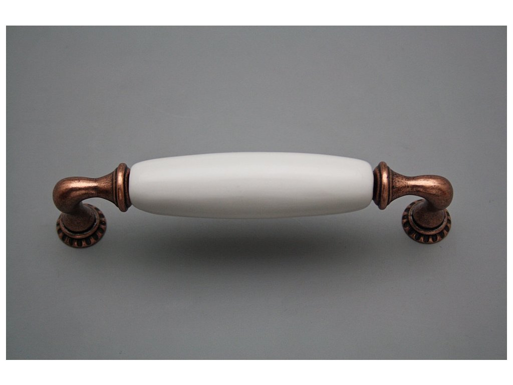 Luxury combined rustic brass handle - pitch of 128mm, design of old copper in combination with porcelain. Included with delivery is 2x Snap off screw (M4 thread, M4x20, 45mm length).