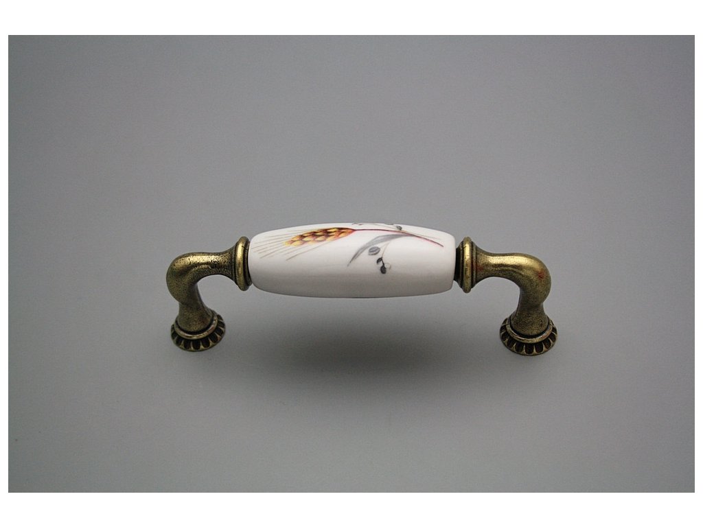 Luxury combined rustic brass handle - pitch of 96mm, design of old brass in combination with porcelain. Included with delivery is 2x Snap off screw (M4 thread, M4x20, 45mm length).