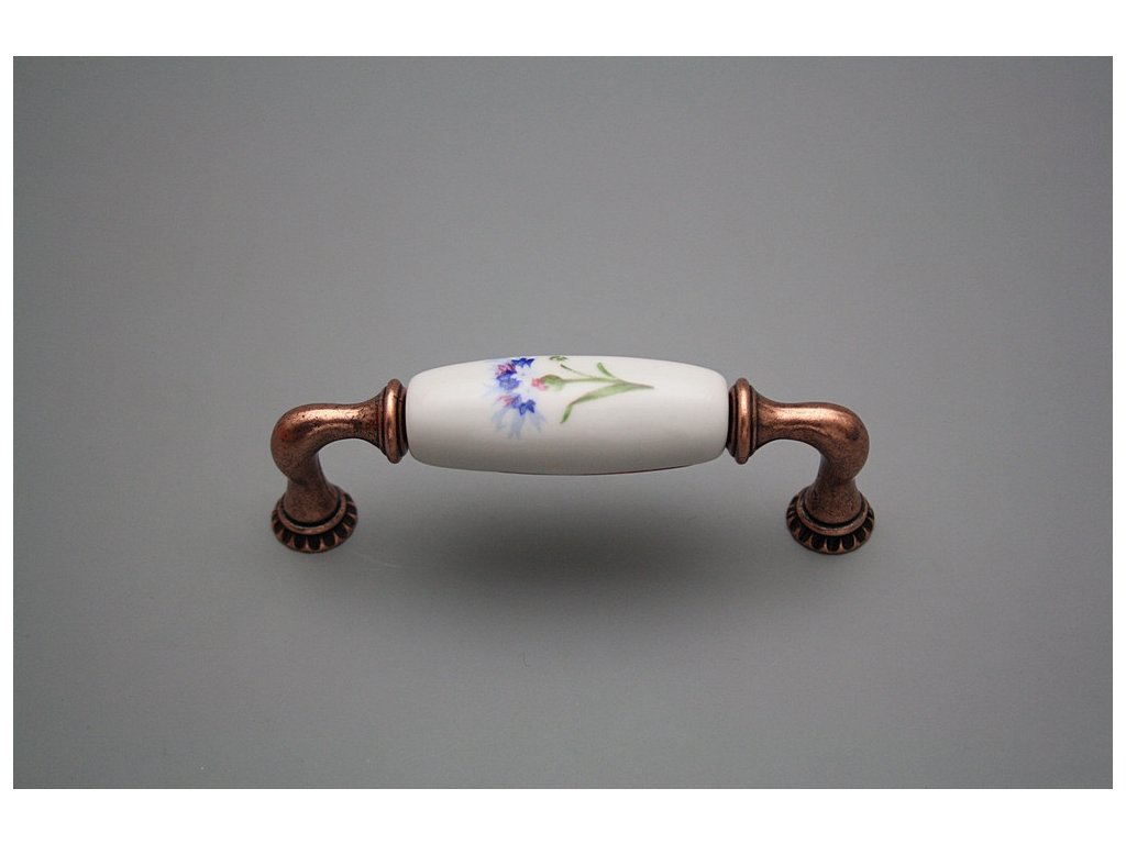 Luxury combined rustic brass handle - pitch of 96mm, design of old copper in combination with porcelain. Included with delivery is 2x Snap off screw (M4 thread, M4x20, 45mm length).