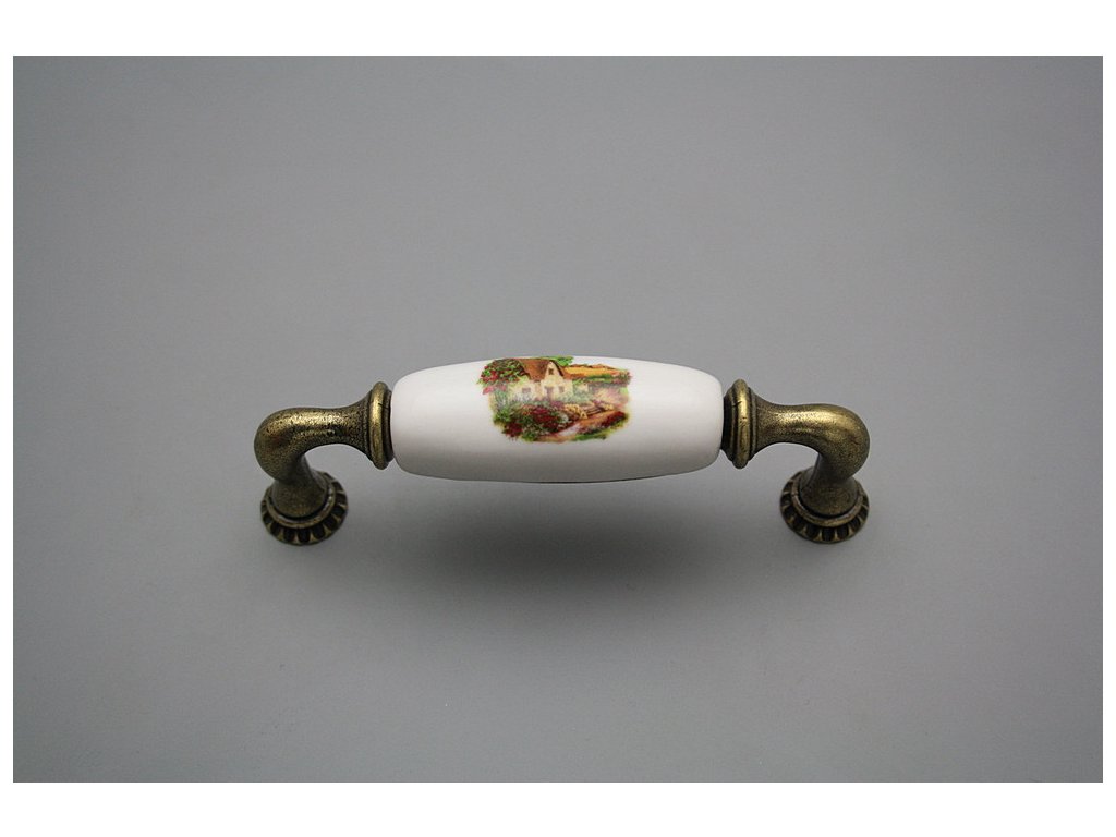 Luxury combined rustic brass handle - pitch of 96mm, design of old brass in combination with porcelain. Included with delivery is 2x Snap off screw (M4 thread, M4x20, 45mm length).