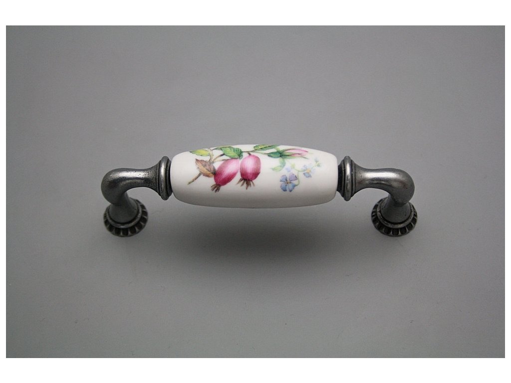 Luxury combined rustic brass handle - pitch of 96mm, design of Antique silver in combination with porcelain. Included with delivery is 2x Snap off screw (M4 thread, M4x20, 45mm length).