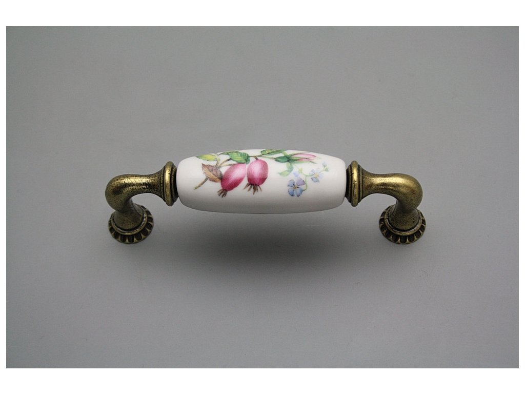 Luxury combined rustic brass handle - pitch of 96mm, design of old brass in combination with porcelain. Included with delivery is 2x Snap off screw (M4 thread, M4x20, 45mm length).