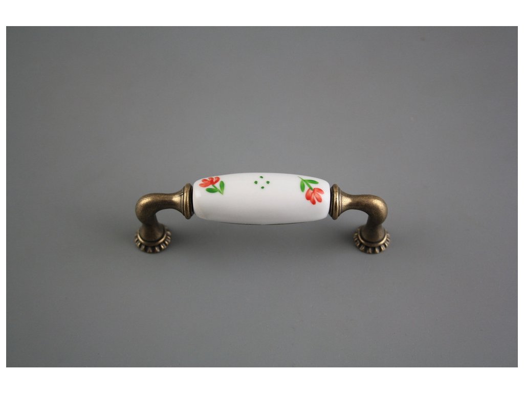 Luxury combined rustic brass handle - pitch of 96mm, design of old brass in combination with porcelain. Included with delivery is 2x Snap off screw (M4 thread, M4x20, 45mm length).