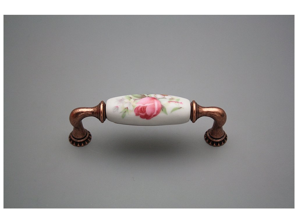 Luxury combined rustic brass handle - pitch of 96mm, design of old copper in combination with porcelain. Included with delivery is 2x Snap off screw (M4 thread, M4x20, 45mm length).