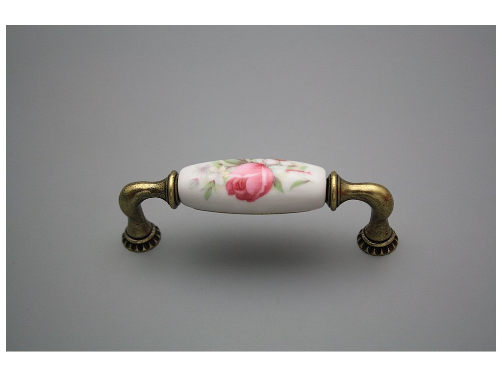 Luxury combined rustic brass handle - pitch of 96mm, design of old brass in combination with porcelain. Included with delivery is 2x Snap off screw (M4 thread, M4x20, 45mm length).