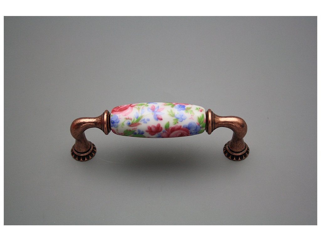 Luxury combined rustic brass handle - pitch of 96mm, design of old copper in combination with porcelain. Included with delivery is 2x Snap off screw (M4 thread, M4x20, 45mm length).
