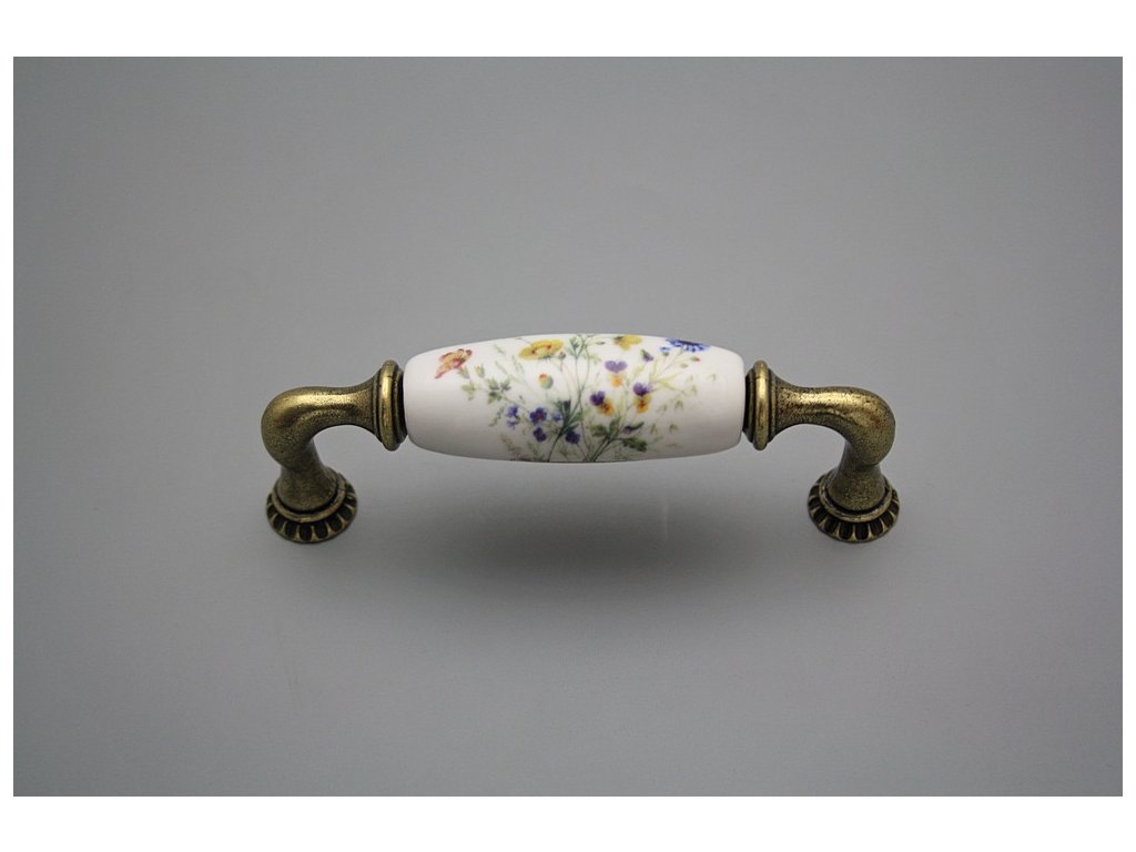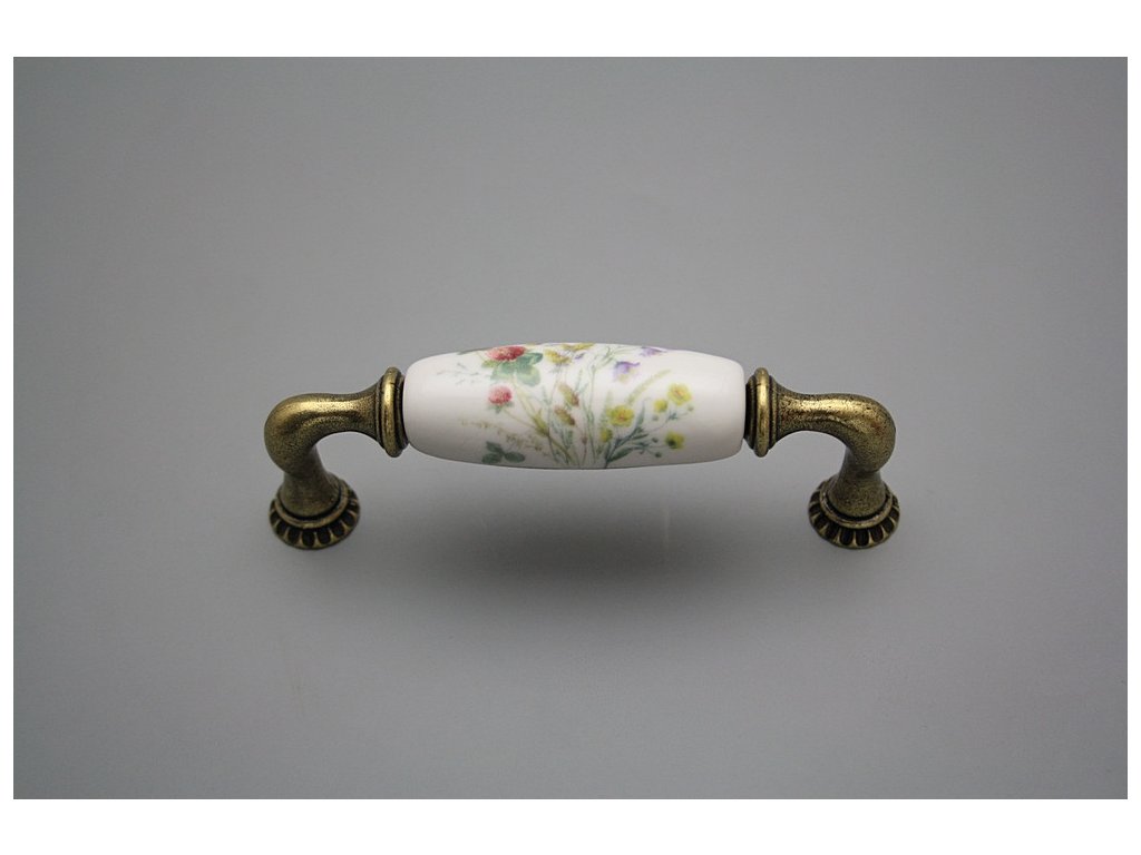 Luxury combined rustic brass handle - pitch of 96mm, design of old brass in combination with porcelain. Included with delivery is 2x Snap off screw (M4 thread, M4x20, 45mm length).