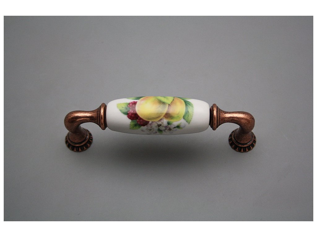 Luxury combined rustic brass handle - pitch of 96mm, design of old copper (CU) in combination with porcelain. Included with delivery is 2x Snap off screw (M4 thread, M4x20, 45mm length).