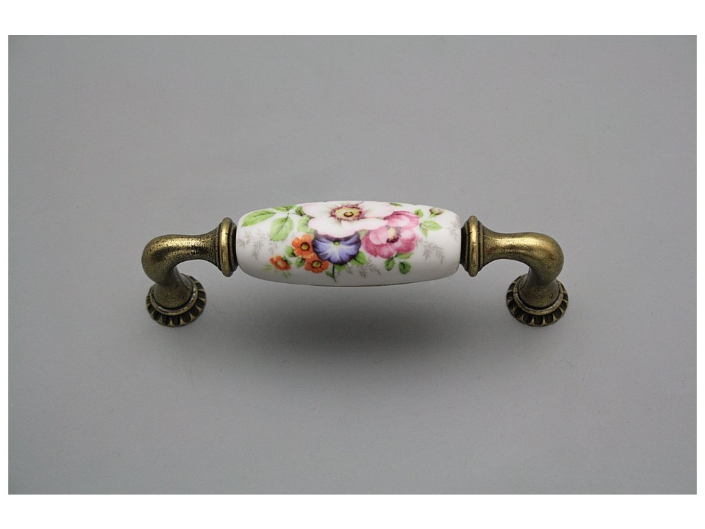Luxury combined rustic brass handle - pitch of 96mm, design of old brass in combination with porcelain. Included with delivery is 2x Snap off screw (M4 thread, M4x20, 45mm length).