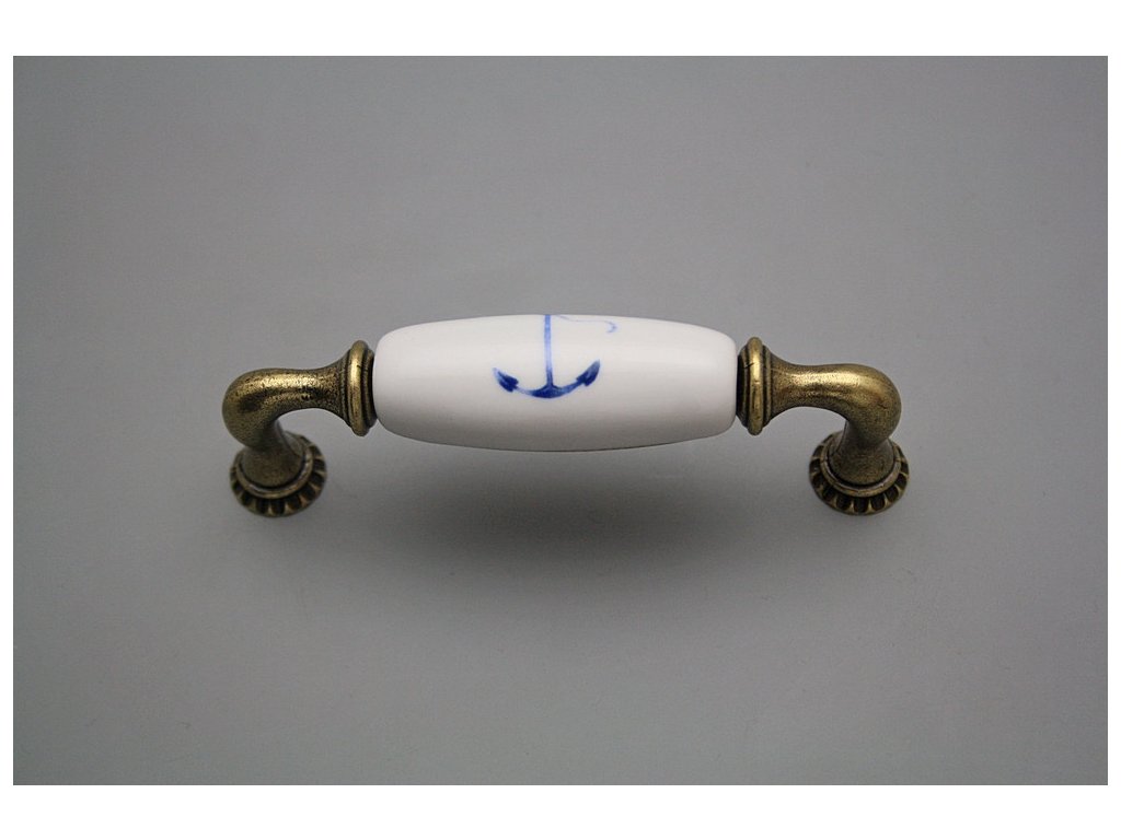 Luxury combined rustic brass handle - pitch of 96mm, design of old brass in combination with porcelain. Included with delivery is 2x Snap off screw (M4 thread, M4x20, 45mm length).