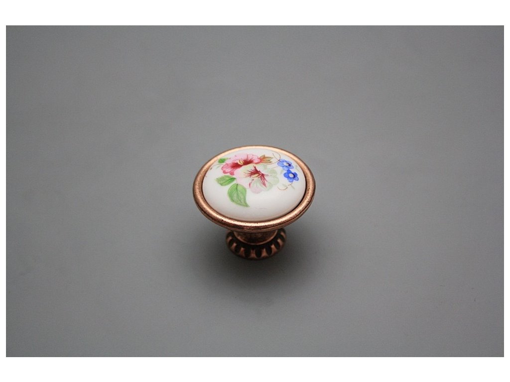 Luxury combined rustic brass knobs - design of Antique cooper (CU) in combination with porcelain. Included with delivery is 1x Snap off screw (M4 thread, M4x20, 45mm length).