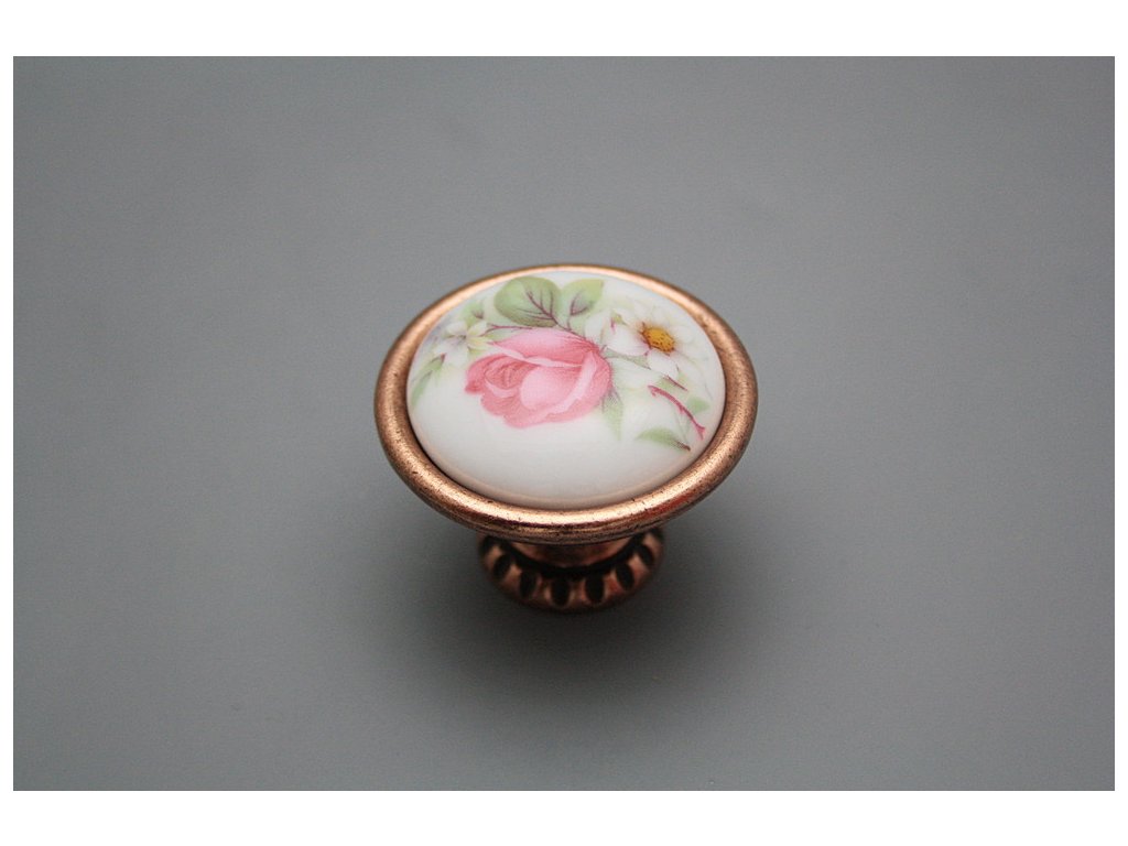 Luxury combined rustic brass knobs - design of Antique cooper (CU) in combination with porcelain. Included with delivery is 1x Snap off screw (M4 thread, M4x20, 45mm length).