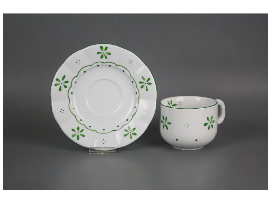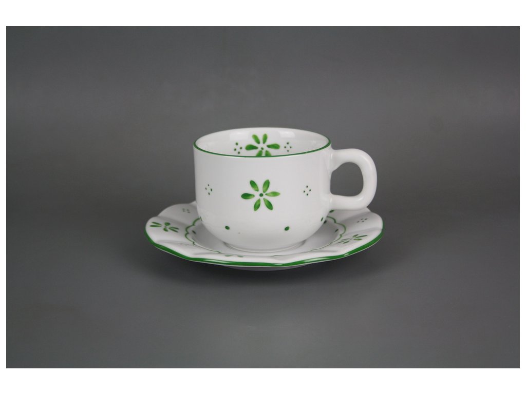 Ručně malovaný šálek 0,3l s podšálkem 17cm s venkovským motivem z kvalitního českého porcelánu. Vhodný do myčky i mikrovlnné trouby.