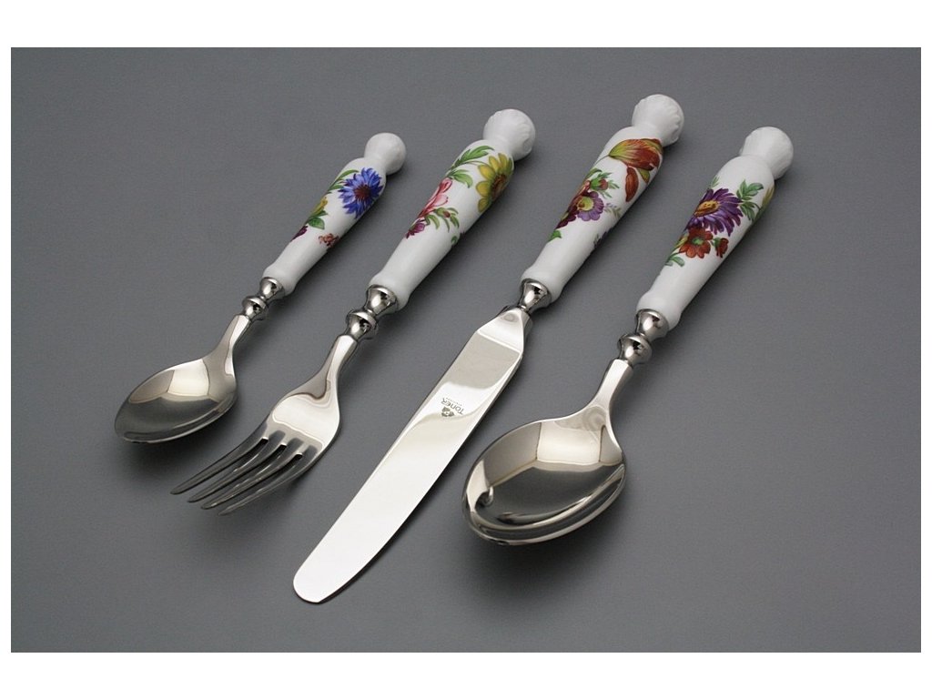 Luxury 24-piece set of cutlery with a thick-walled porcelain handles of hard porcelain. Wooden cassette must be ordered separately. Microwave NOT! Dishwasher NOT!