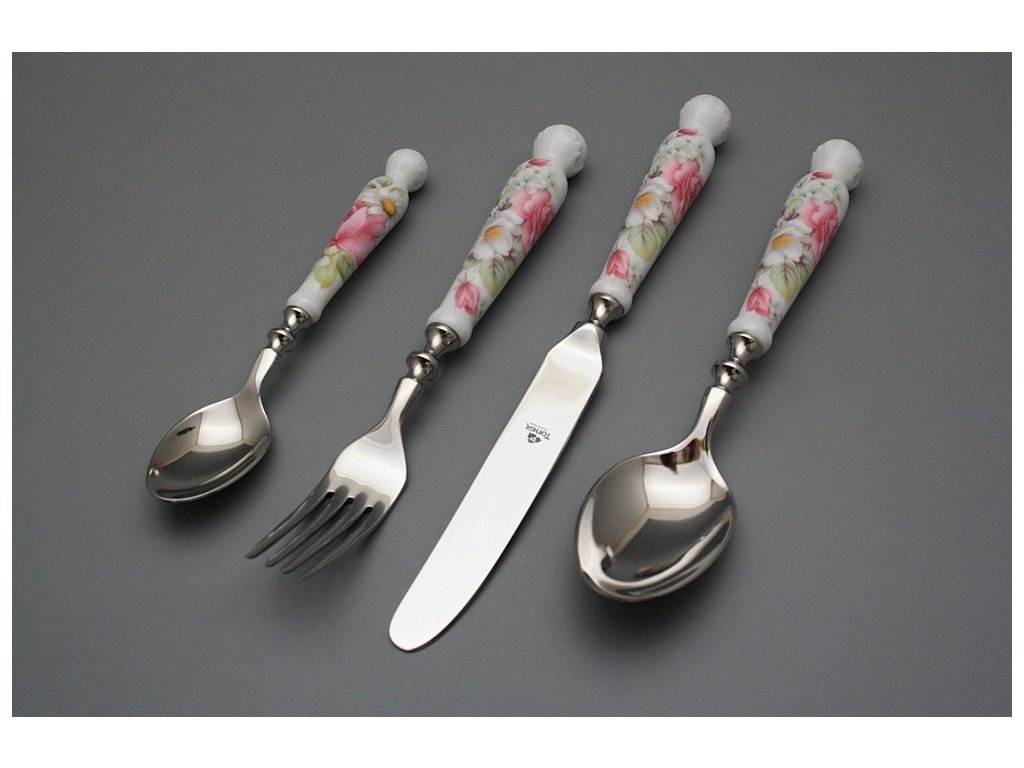 Luxury 24-piece set of cutlery with a thick-walled porcelain handles of hard porcelain. Wooden cassette must be ordered separately. Microwave NOT! Dishwasher NOT!