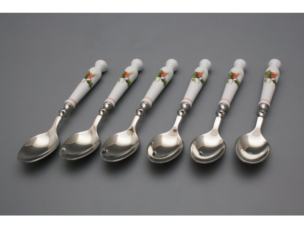 Luxury 6-piece set of spoons with a thick-walled porcelain handles of hard porcelain. Microwave NOT! Dishwasher NOT!