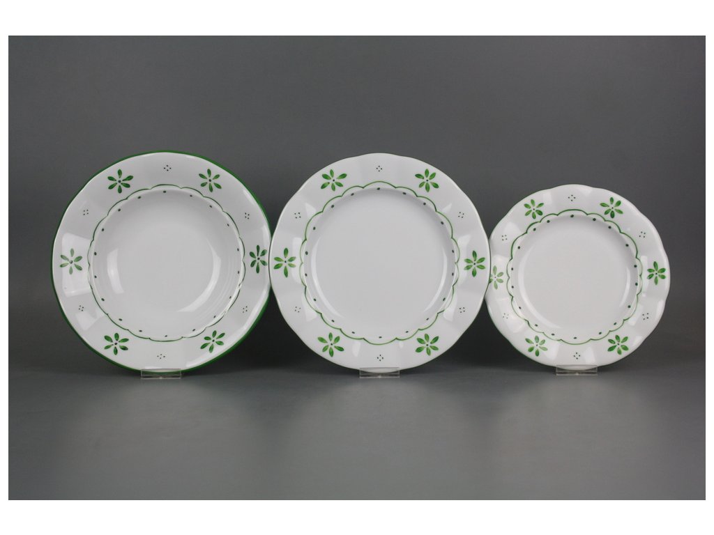 Practical 12-piece hand-painted plate set of high-quality Czech porcelain.