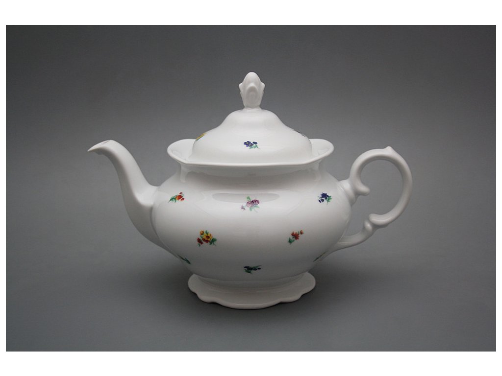 Practical teapot 1,15l with strainer (inside front spout) of high-quality Czech porcelain. Microwave YES! Dischwasher YES!