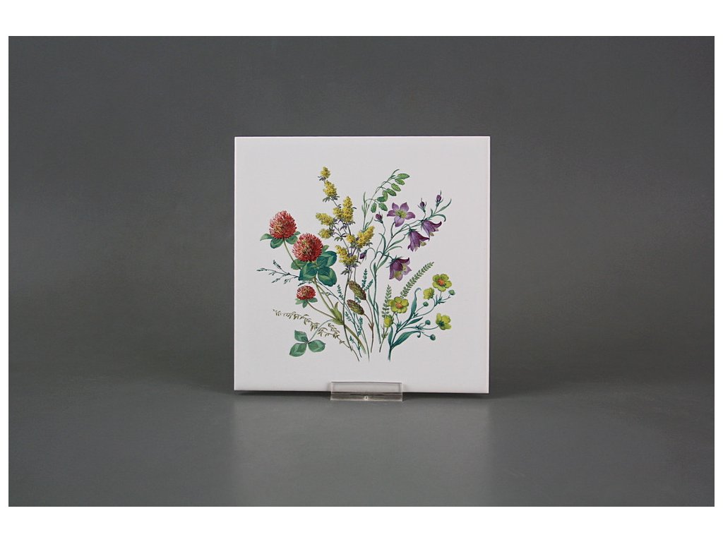 Decorated ceramic tile, 15x15cm, from the Czech manufacturer RAKO. Fired at 820°C for a durable, washable finish. Decorated using COLOR ONE ceramic tiles with a matte, white surface.