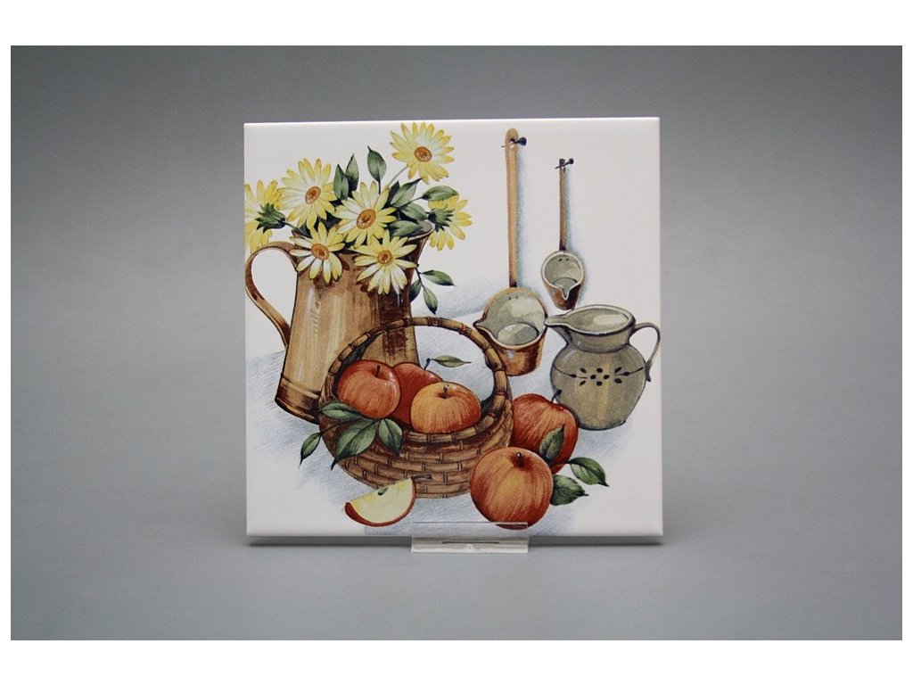 Decorated ceramic tile, 15x15cm, from the Czech manufacturer RAKO. Fired at 820°C for a durable, washable finish. Decorated using COLOR ONE ceramic tiles with a matte, white surface.