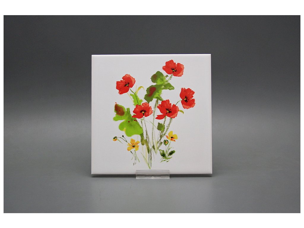 Decorated ceramic tile, 15x15cm, from the Czech manufacturer RAKO. Fired at 820°C for a durable, washable finish. Decorated using COLOR ONE ceramic tiles with a matte, white surface.