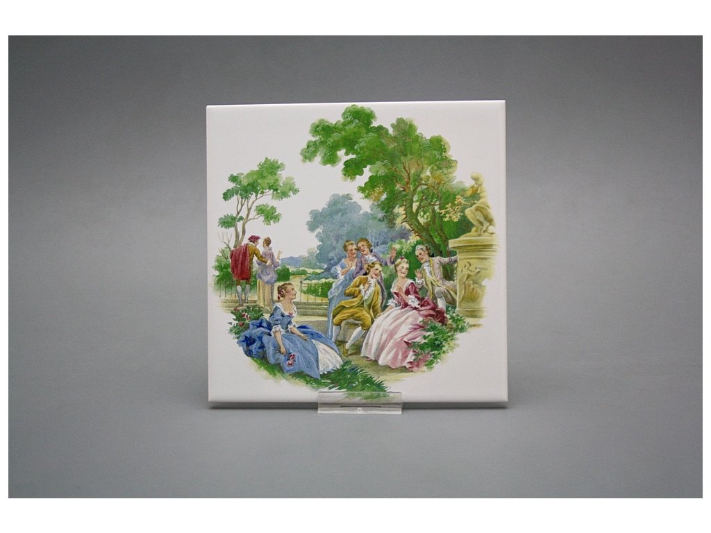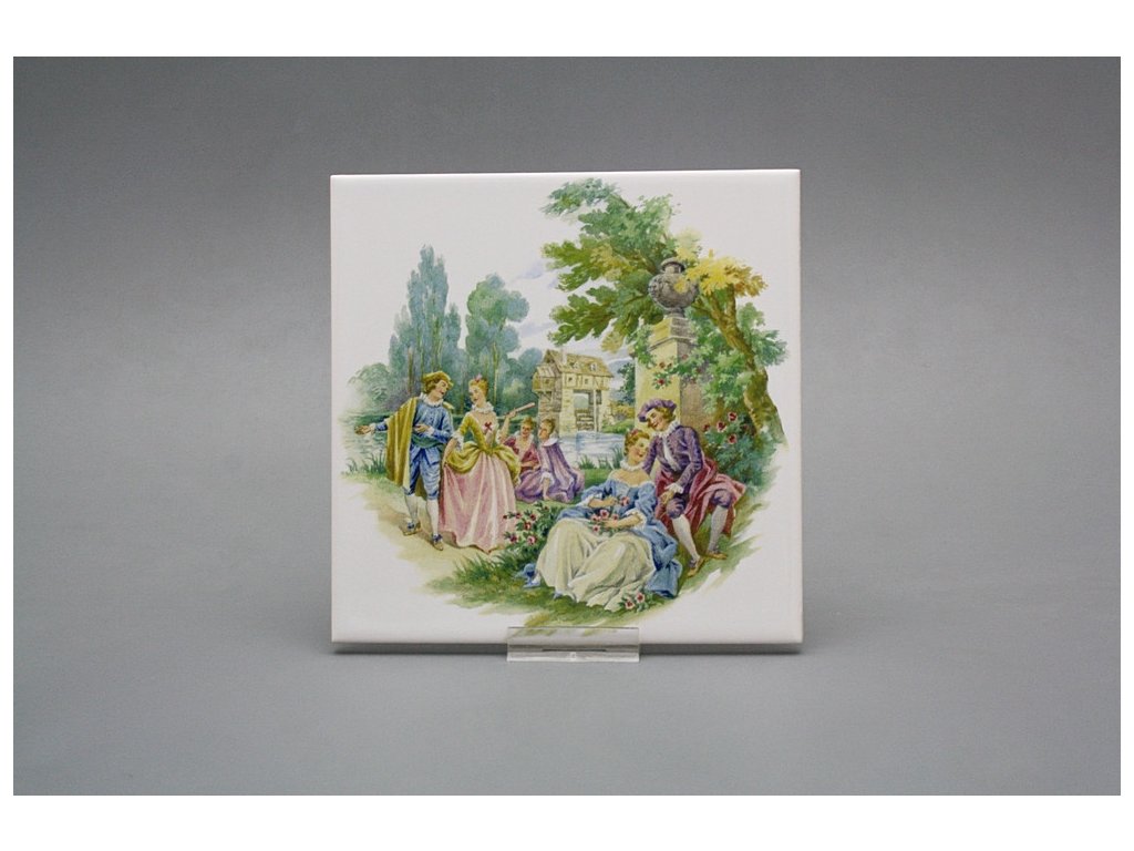 Decorated ceramic tile, 15x15cm, from the Czech manufacturer RAKO. Fired at 820°C for a durable, washable finish. Decorated using COLOR ONE ceramic tiles with a glossy, white surface.