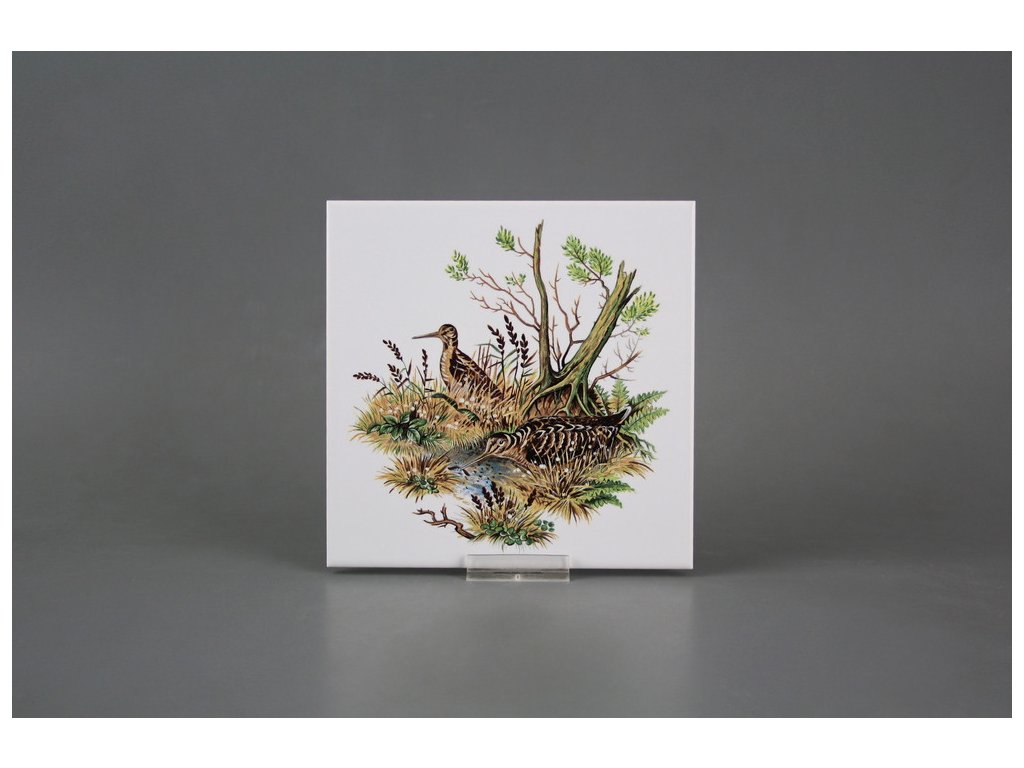 Decorated ceramic tile, 15x15cm, from the Czech manufacturer RAKO. Fired at 820°C for a durable, washable finish. Decorated using COLOR ONE ceramic tiles with a glossy, white surface.