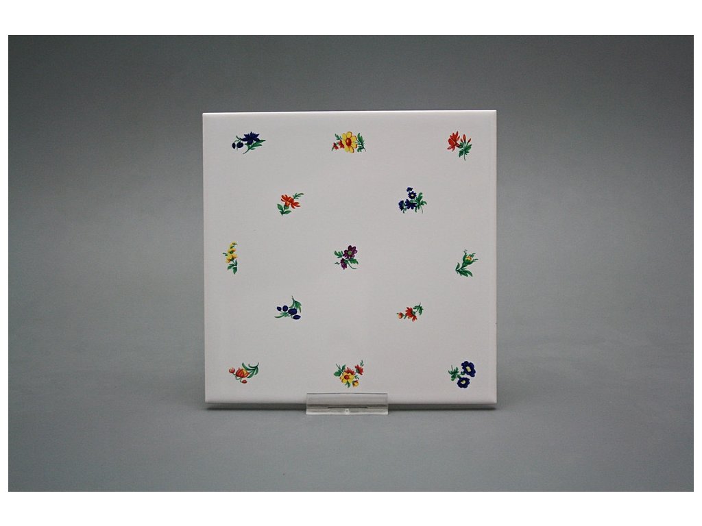Decorated ceramic tile, 15x15cm, from the Czech manufacturer RAKO. Fired at 820°C for a durable, washable finish. Decorated using COLOR ONE ceramic tiles with a glossy, white surface.