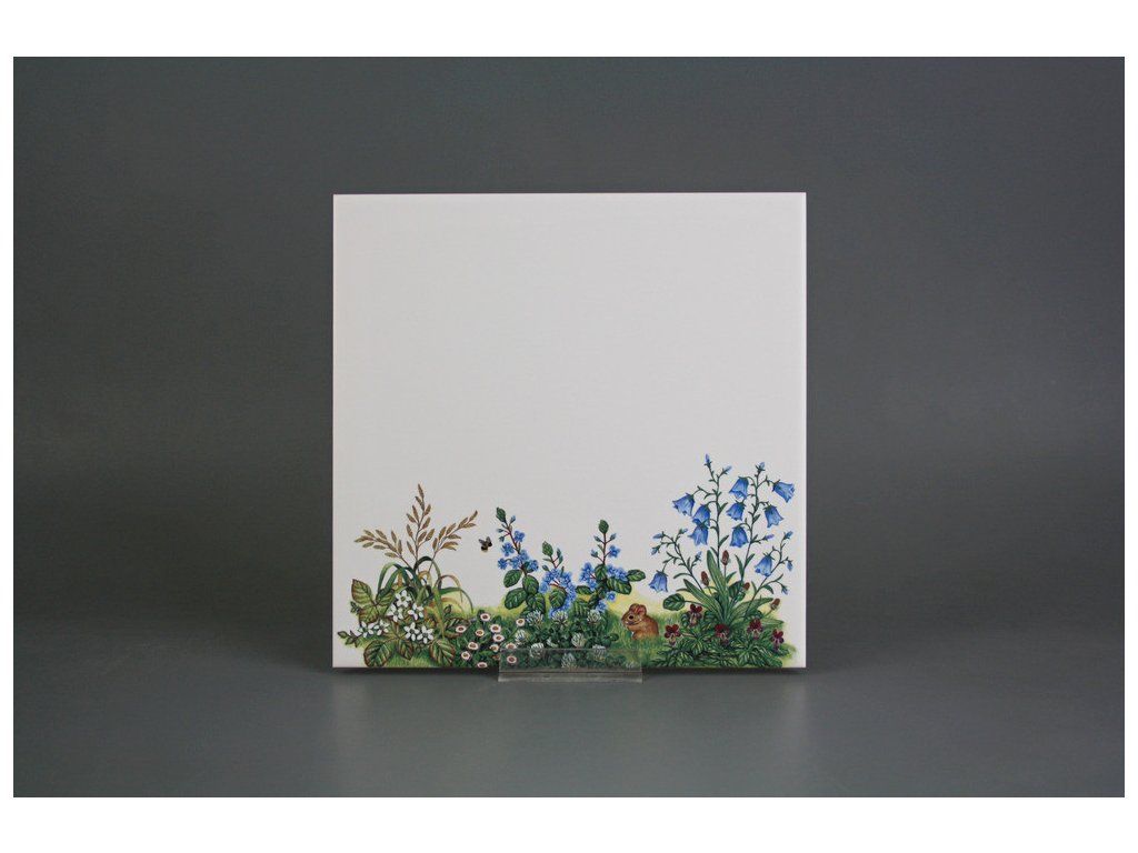 Decorated ceramic tile, 20x20cm, from the Czech manufacturer RAKO. Fired at 820°C for a durable, washable finish. Decorated using COLOR ONE ceramic tiles with a matte, white surface.