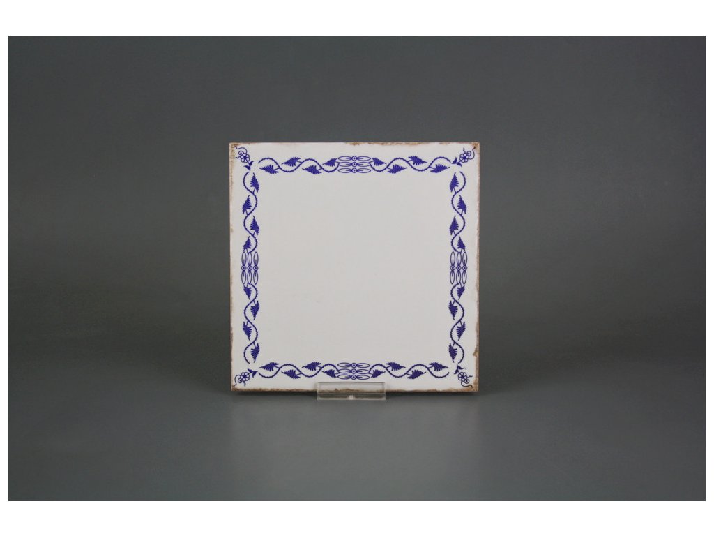 Decorated ceramic tile, 15x15cm, in retro style from the Spanish manufacturer FABRESA. Fired at a temperature of 820°C for a durable, washable finish. FORLI BLANCO ceramic tiles were used for decoration, featuring a glossy, white, aged surface.