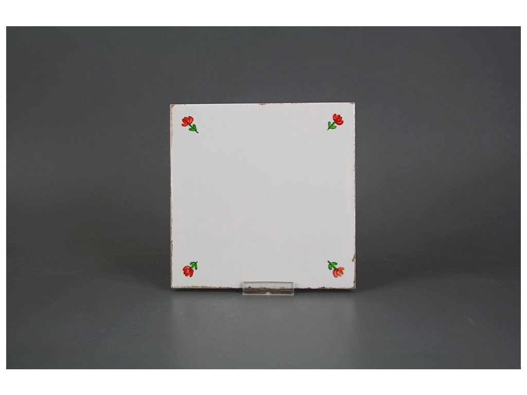 Hand-painted ceramic tile, 15x15cm, in retro style from the Spanish manufacturer FABRESA. Fired at a temperature of 820°C for a durable, washable finish. FORLI BLANCO ceramic tiles were used for decoration, featuring a glossy, white, aged surface.