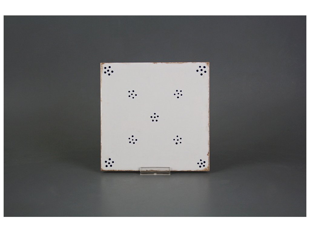 Hand-painted ceramic tile, 15x15cm, in retro style from the Spanish manufacturer FABRESA. Fired at a temperature of 820°C for a durable, washable finish. FORLI BLANCO ceramic tiles were used for decoration, featuring a glossy, white, aged surface.
