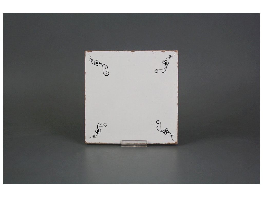 Hand-painted ceramic tile, 15x15cm, in retro style from the Spanish manufacturer FABRESA. Fired at a temperature of 820°C for a durable, washable finish. FORLI BLANCO ceramic tiles were used for decoration, featuring a glossy, white, aged surface.