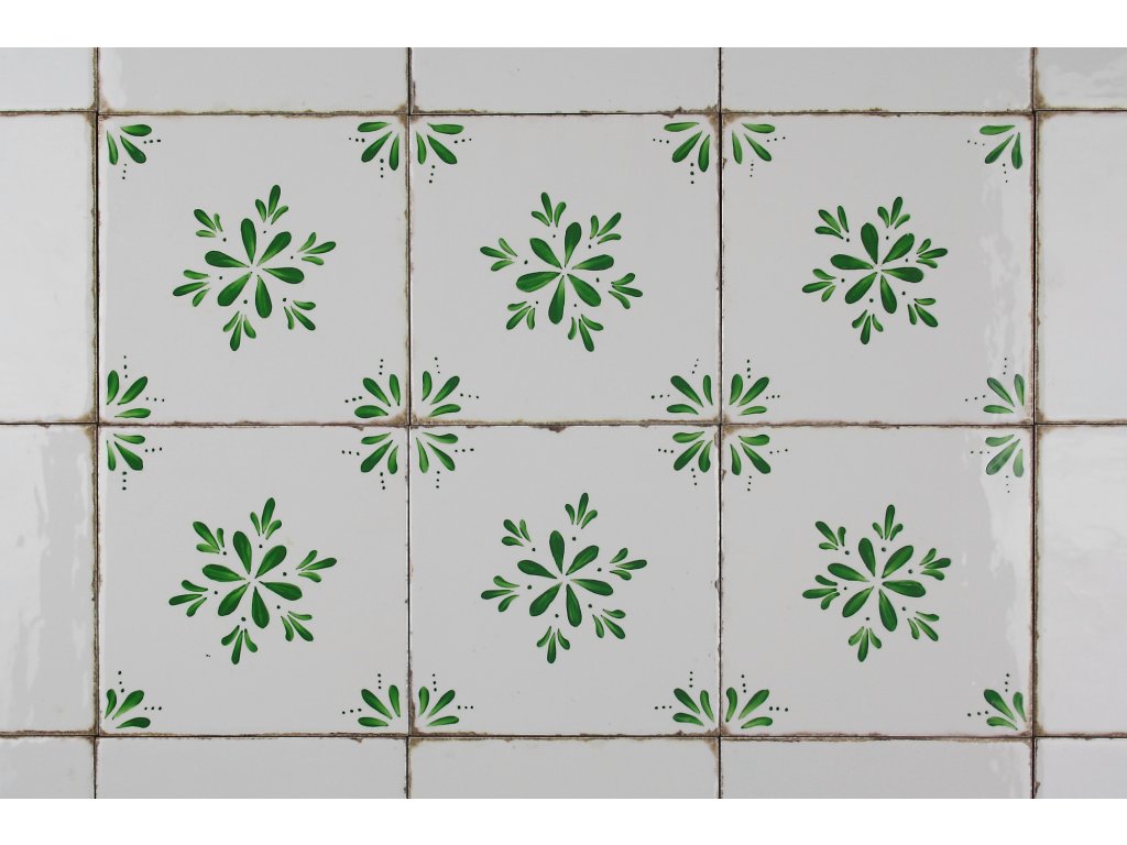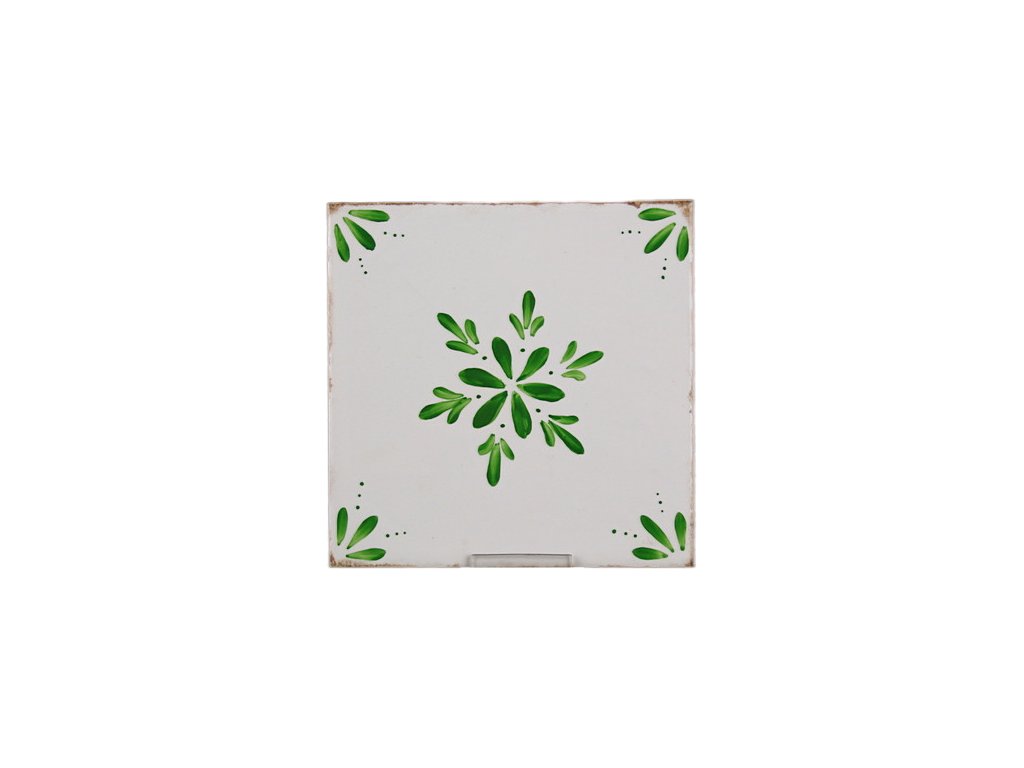 Hand-painted ceramic tile, 15x15cm, in retro style from the Spanish manufacturer FABRESA. Fired at a temperature of 820°C for a durable, washable finish. FORLI BLANCO ceramic tiles were used for decoration, featuring a glossy, white, aged surface.