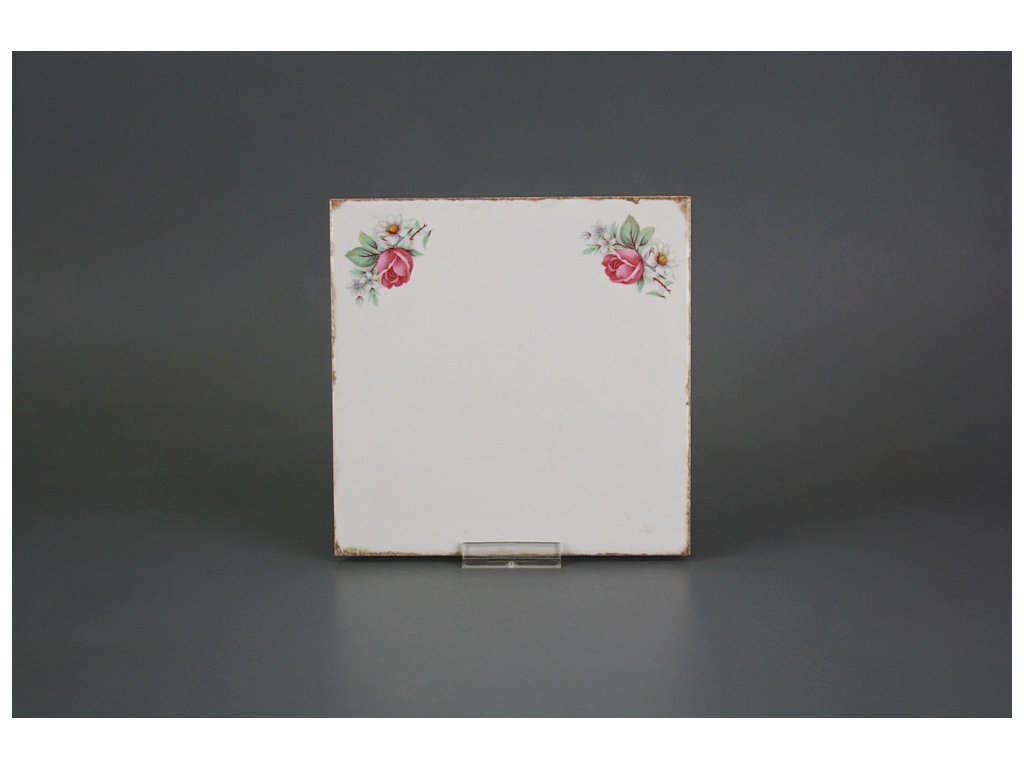 Decorated ceramic tile, 15x15cm, in retro style from the Spanish manufacturer FABRESA. Fired at a temperature of 820°C for a durable, washable finish. FORLI BLANCO ceramic tiles were used for decoration, featuring a glossy, white, aged surface.