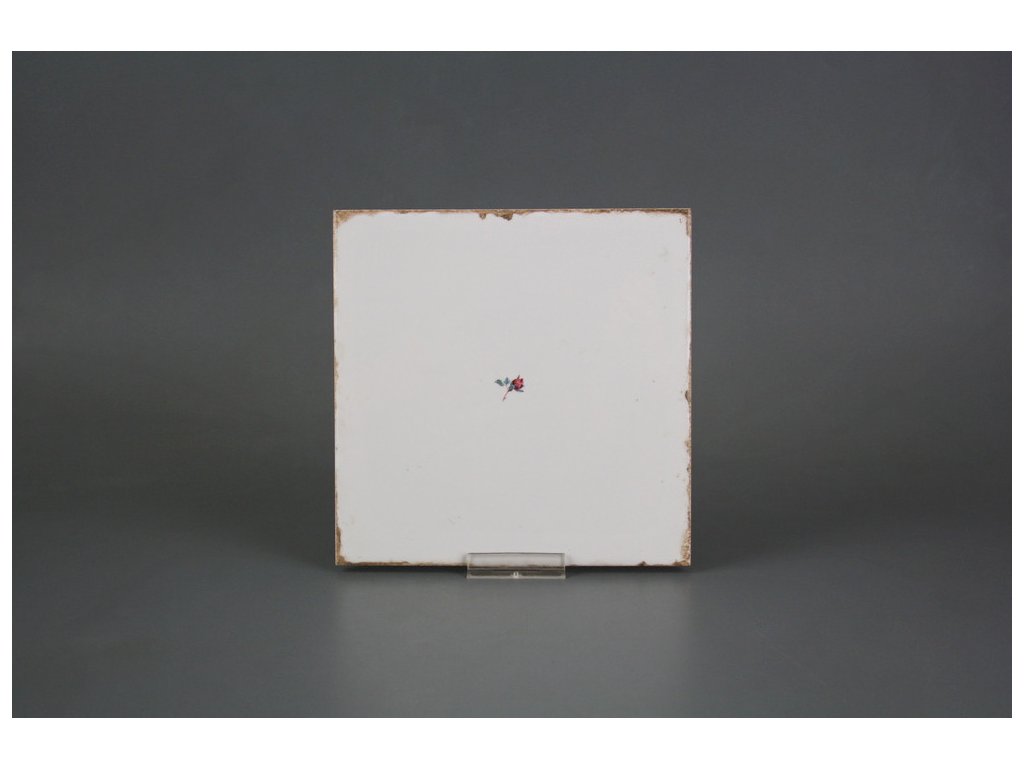 Decorated ceramic tile, 15x15cm, in retro style from the Spanish manufacturer FABRESA. Fired at a temperature of 820°C for a durable, washable finish. FORLI BLANCO ceramic tiles were used for decoration, featuring a glossy, white, aged surface.