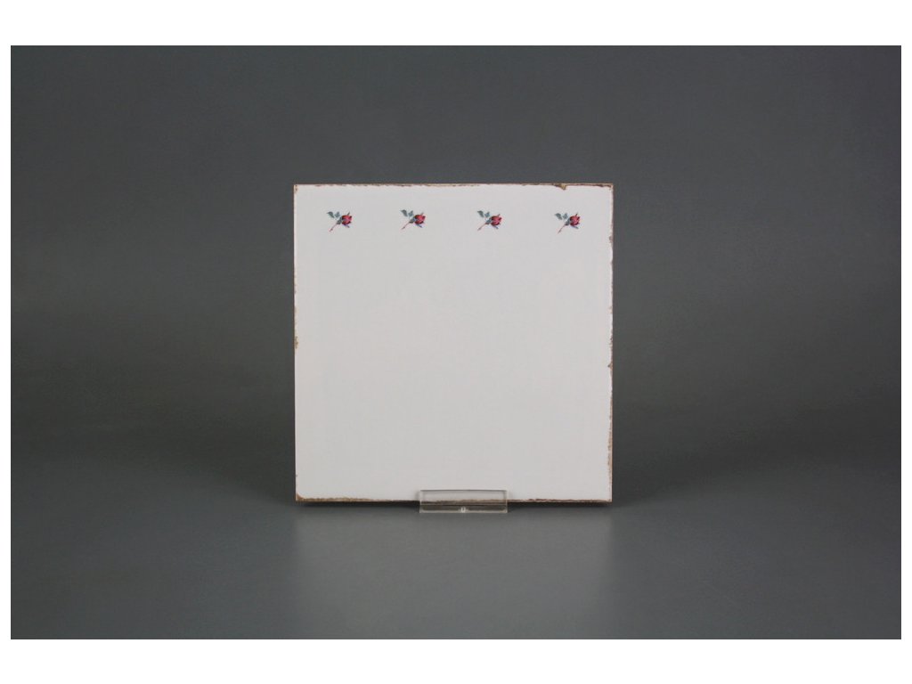 Decorated ceramic tile, 15x15cm, in retro style from the Spanish manufacturer FABRESA. Fired at a temperature of 820°C for a durable, washable finish. FORLI BLANCO ceramic tiles were used for decoration, featuring a glossy, white, aged surface.