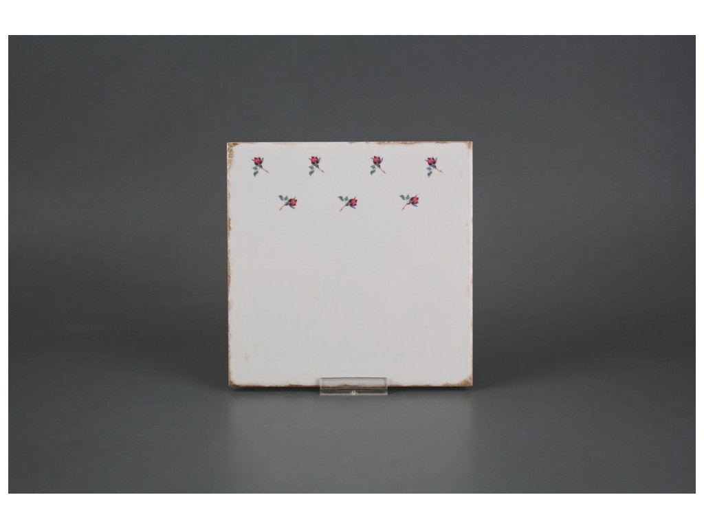 Decorated ceramic tile, 15x15cm, in retro style from the Spanish manufacturer FABRESA. Fired at a temperature of 820°C for a durable, washable finish. FORLI BLANCO ceramic tiles were used for decoration, featuring a glossy, white, aged surface.