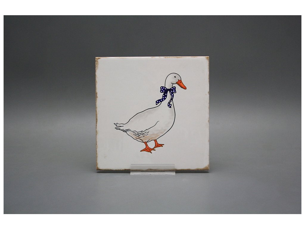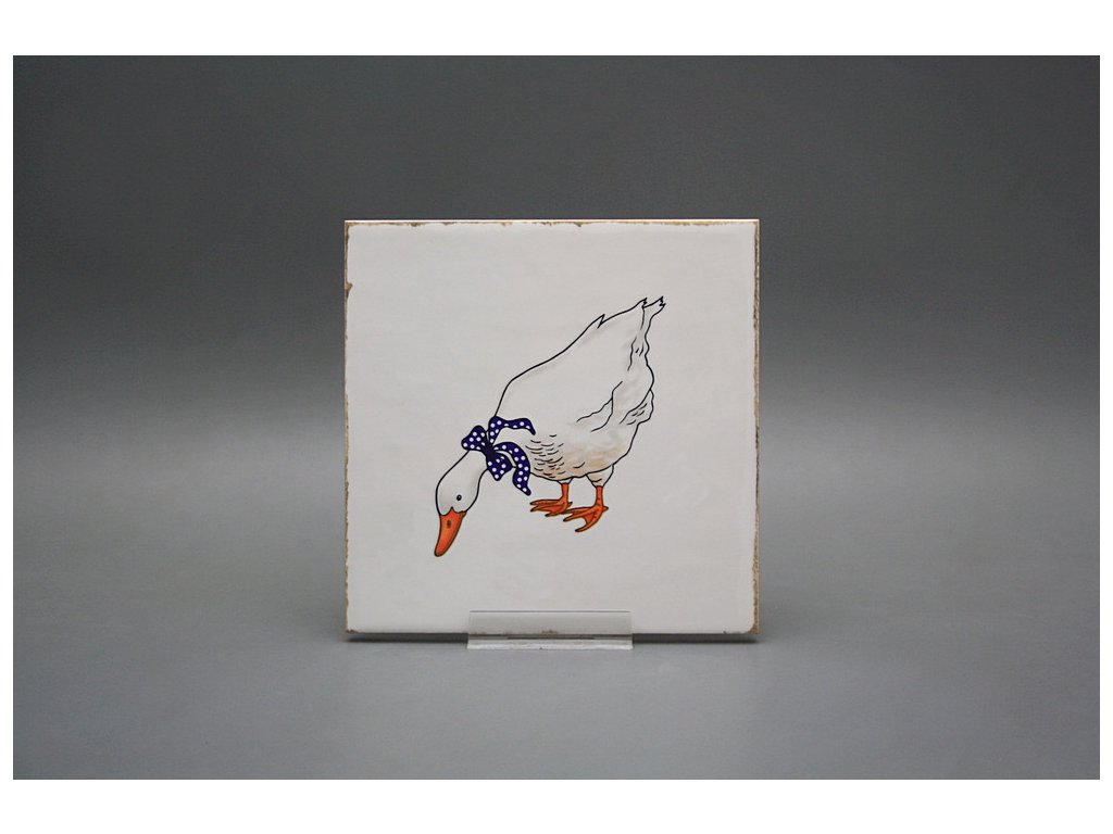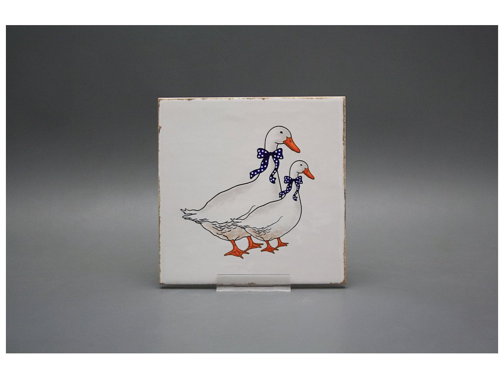 Decorated ceramic tile, 15x15cm, in retro style from the Spanish manufacturer FABRESA. Fired at a temperature of 820°C for a durable, washable finish. FORLI BLANCO ceramic tiles were used for decoration, featuring a glossy, white, aged surface.
